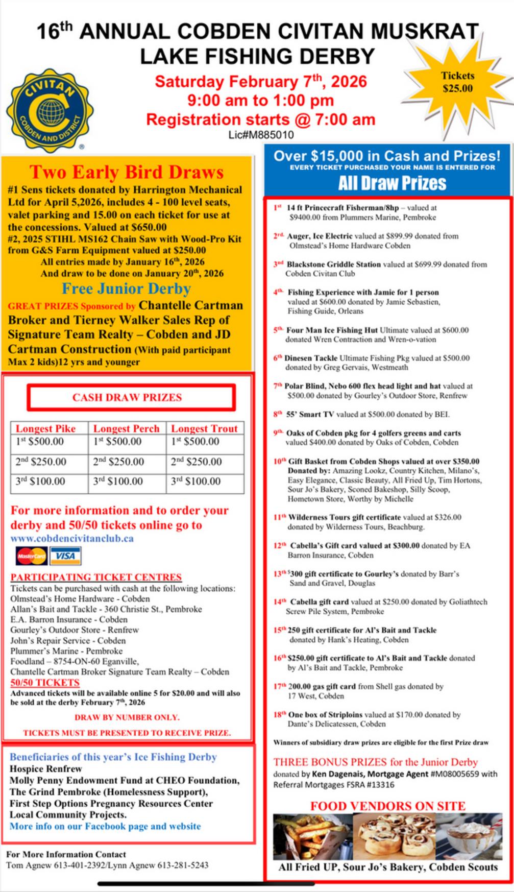 Located on the edge of Muskrat Lake, the park also has a lovely beach area as a result of the never-ending work by The Cobden Civitans Club. This Club, which has supported numerous community projects since its formation in 1974, initiated a project in 1988 to improve and rebuild the beach area at the park and waterfront. The project took three years to complete but the outcome is visible today as one takes a leisurely stroll along the beach.
